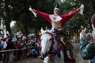 Yabusame is a martial art with the object of hitting three targets while riding a horse. The original Yabusame began in the Heian era. When the samurai gained their power from the late Heian era through the Kamakura era, they tended to dedicate Yabusame to a shrine in order to pray for victory. It was found that Yabusame was dedicated to just 14 shrines in Saitama Prefecture. Currently, Yabusame is dedicated to Izumoiwai Shrine in Moroyama-machi and Hagihiyoshi Shrine in Tokigawa-machi, only two locations in Saitama.